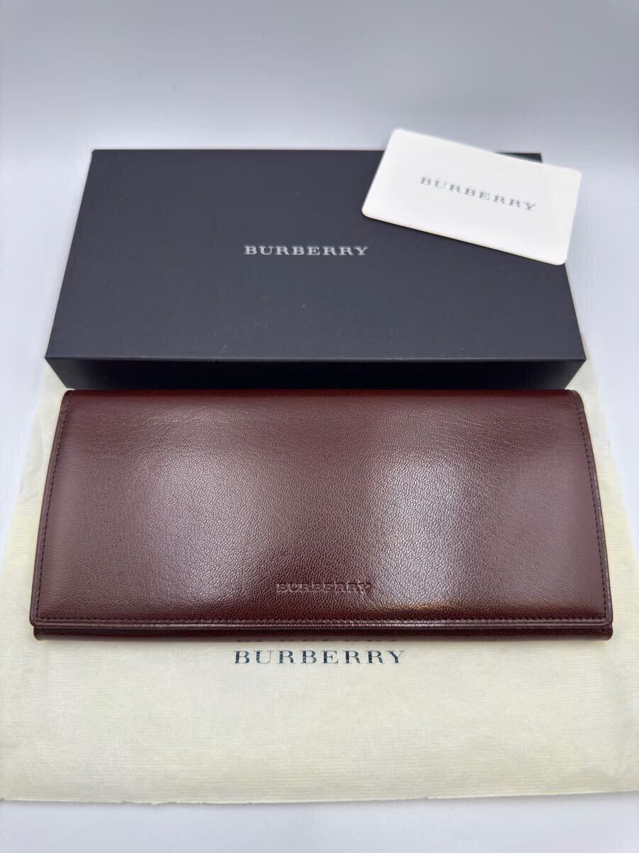 - 未使用品 バーバリー 長財布 ダークブラウン チェック レザー 小銭入れ付き メンズ レディース 二つ折り財布 カードケース コインケース