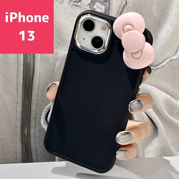 - iPhone13 ケース 3D リボン 可愛い お洒落 韓国 ブラック 大人気