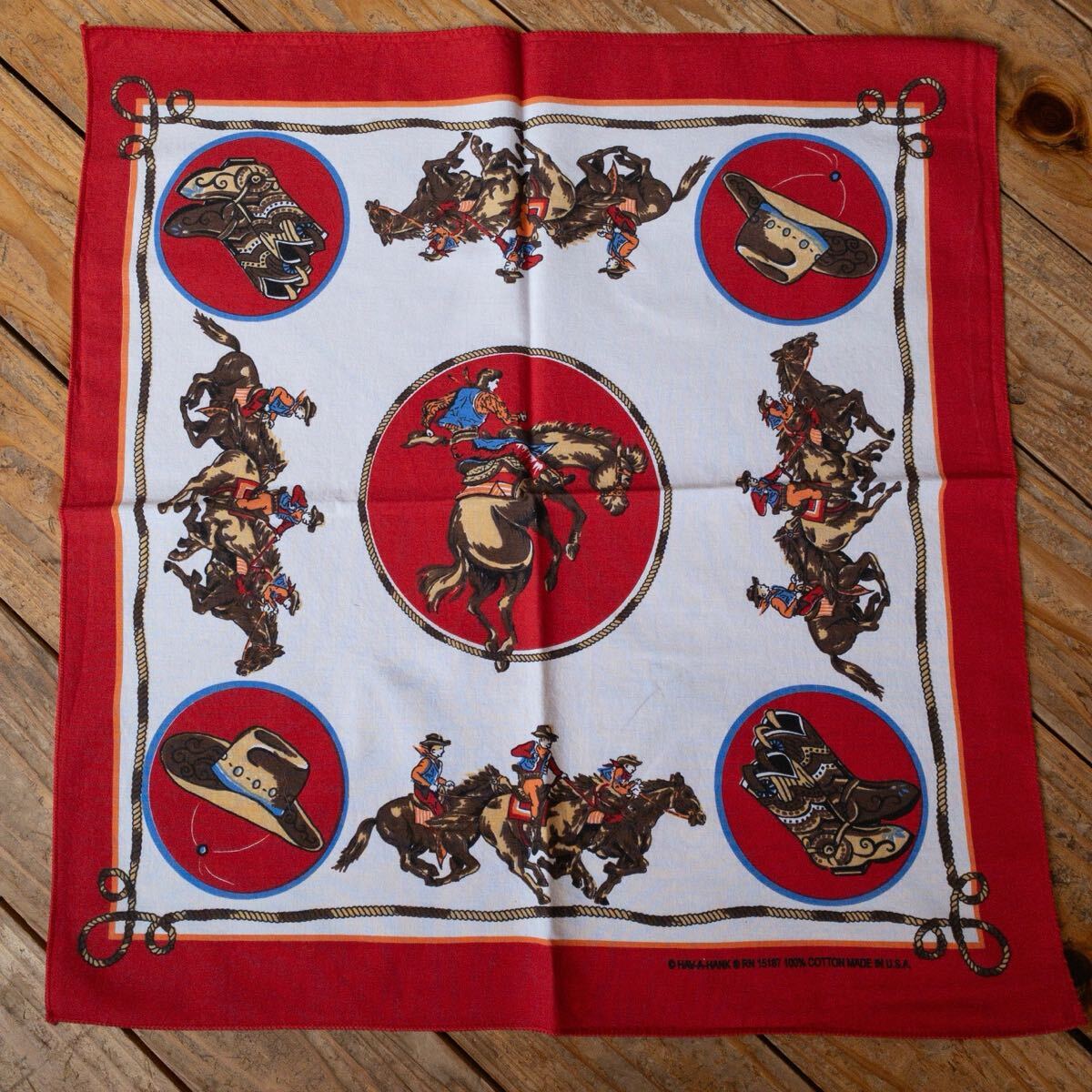 - 送料無料 Vintage バンダナ ウエスタン柄 ハンカチ ブーツ ロープ ハット コットン100% アメリカ仕入れ 雑貨 ヴィンテージ A1593