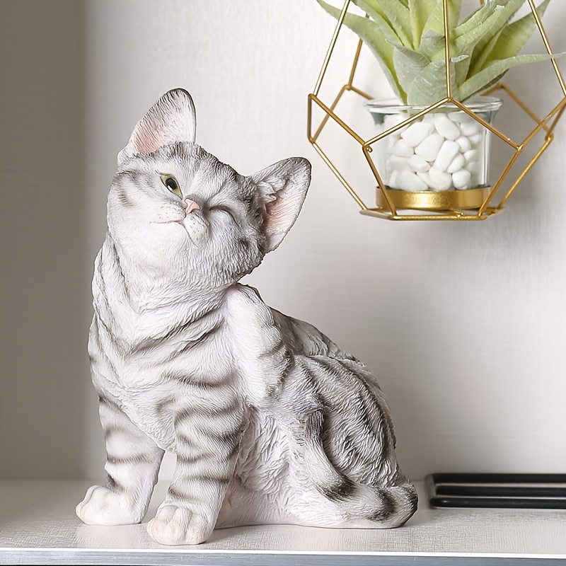 - フィギュア 後ろ足で掻く猫 サバトラ 樹脂像 ネコ 置物 19cm かわいい リアル ねこ ミニチュア インテリア 庭 動物 レジン おしゃれ t7117