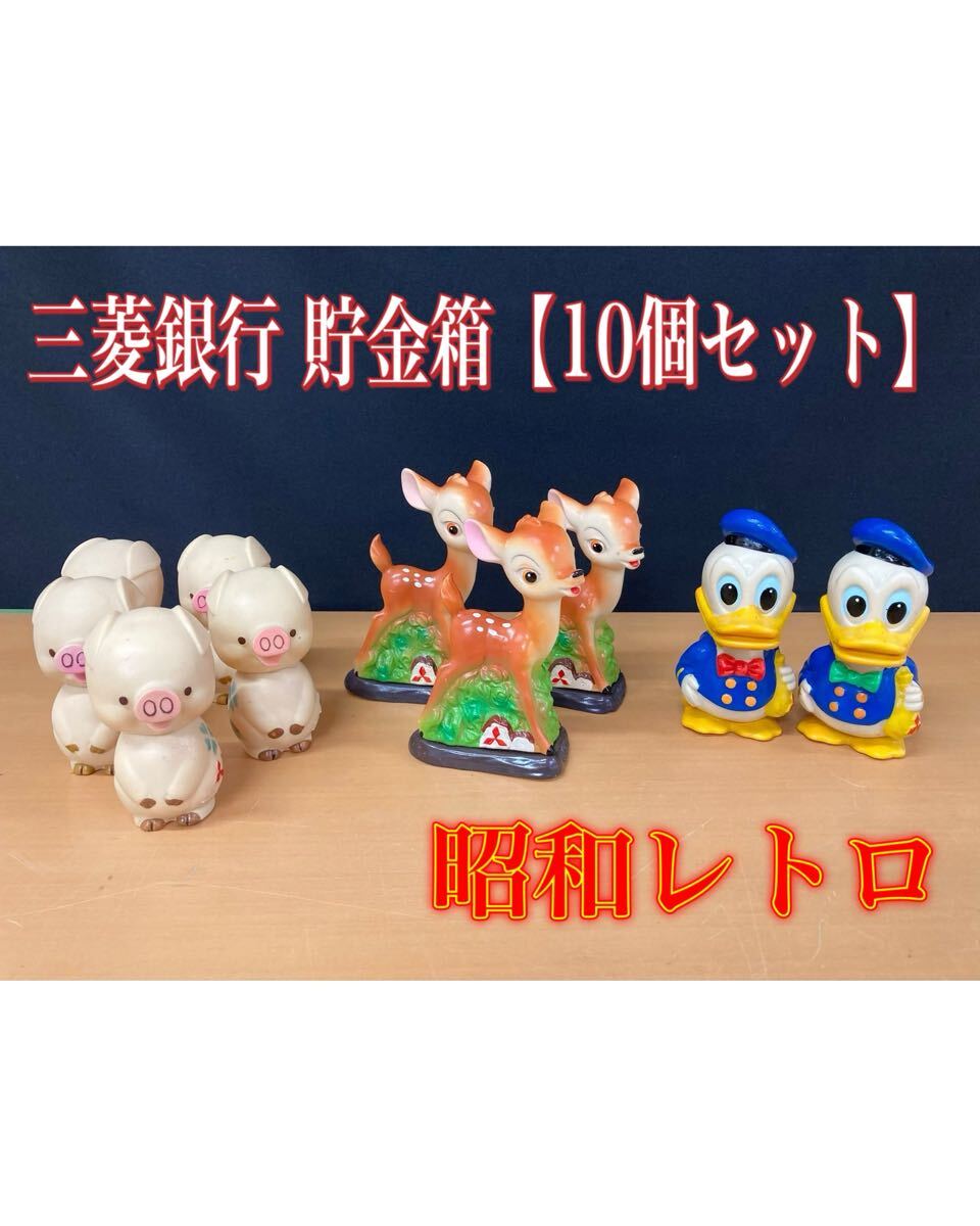 - イ) レトロ 三菱銀行 貯金箱 10個セット ソフビ フィギュア ブタ バンビ ドナルド 昭和レトロ アンティーク 置物 (250626 K-2)