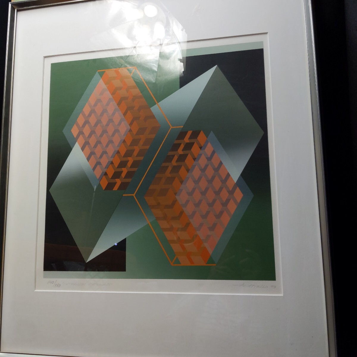 - 609 リトグラフ 真作 マリオ・アガティエッロ 直筆サイン 140/180 額装 インテリア おしゃれ トレンド