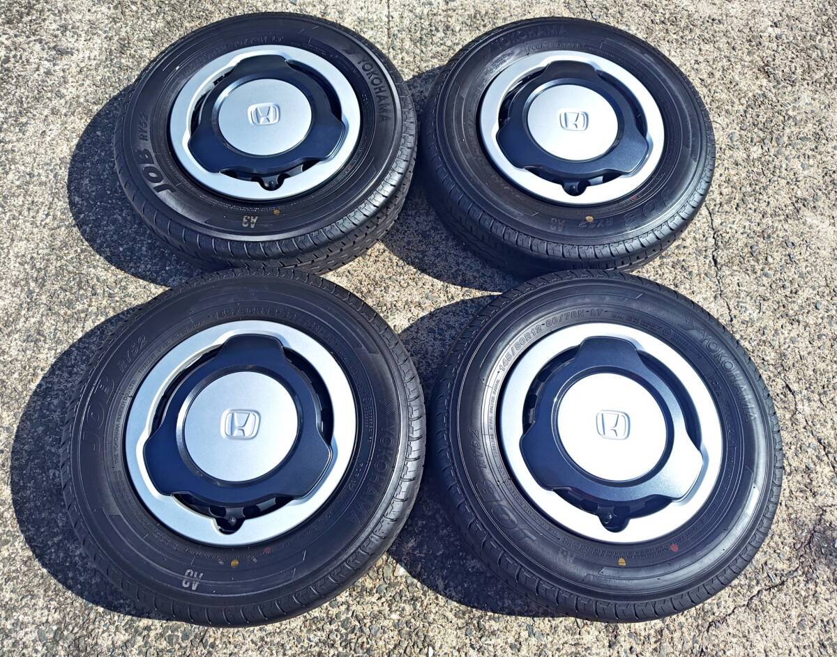 - 送料込も!2021年製300㎞外し!N-VAN FAN+ターボ 国産ヨコハマ製エコタイヤJOB付き!145/80R12純正カバーSET JJ1 アクティ バモス 軽トラに