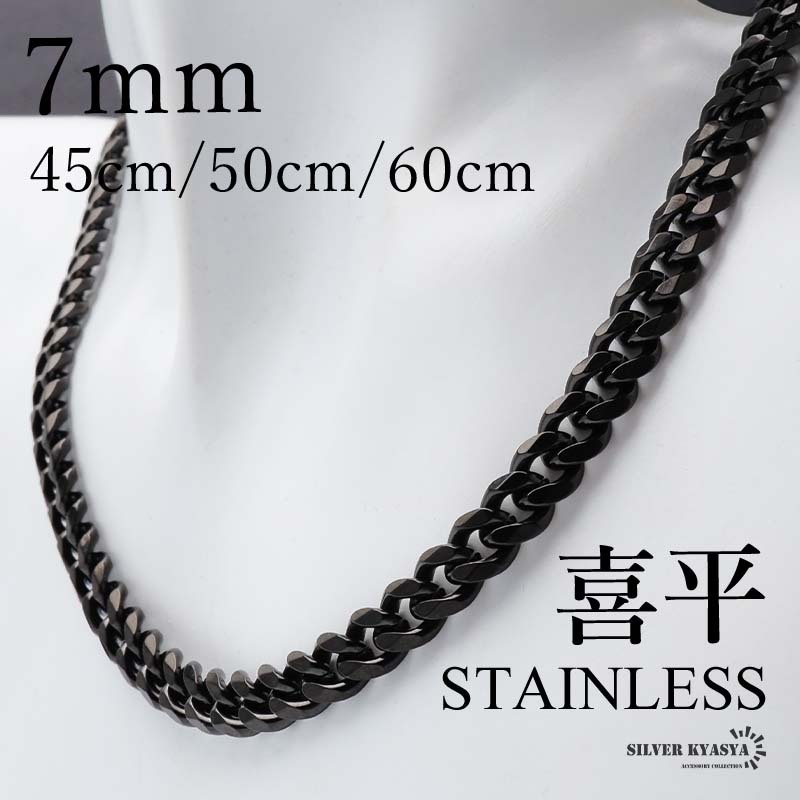 - (45cm) ステンレス 喜平ネックレス チェーンネックレス 幅7mm ブラックネックレス 細身 メンズ 金アレ