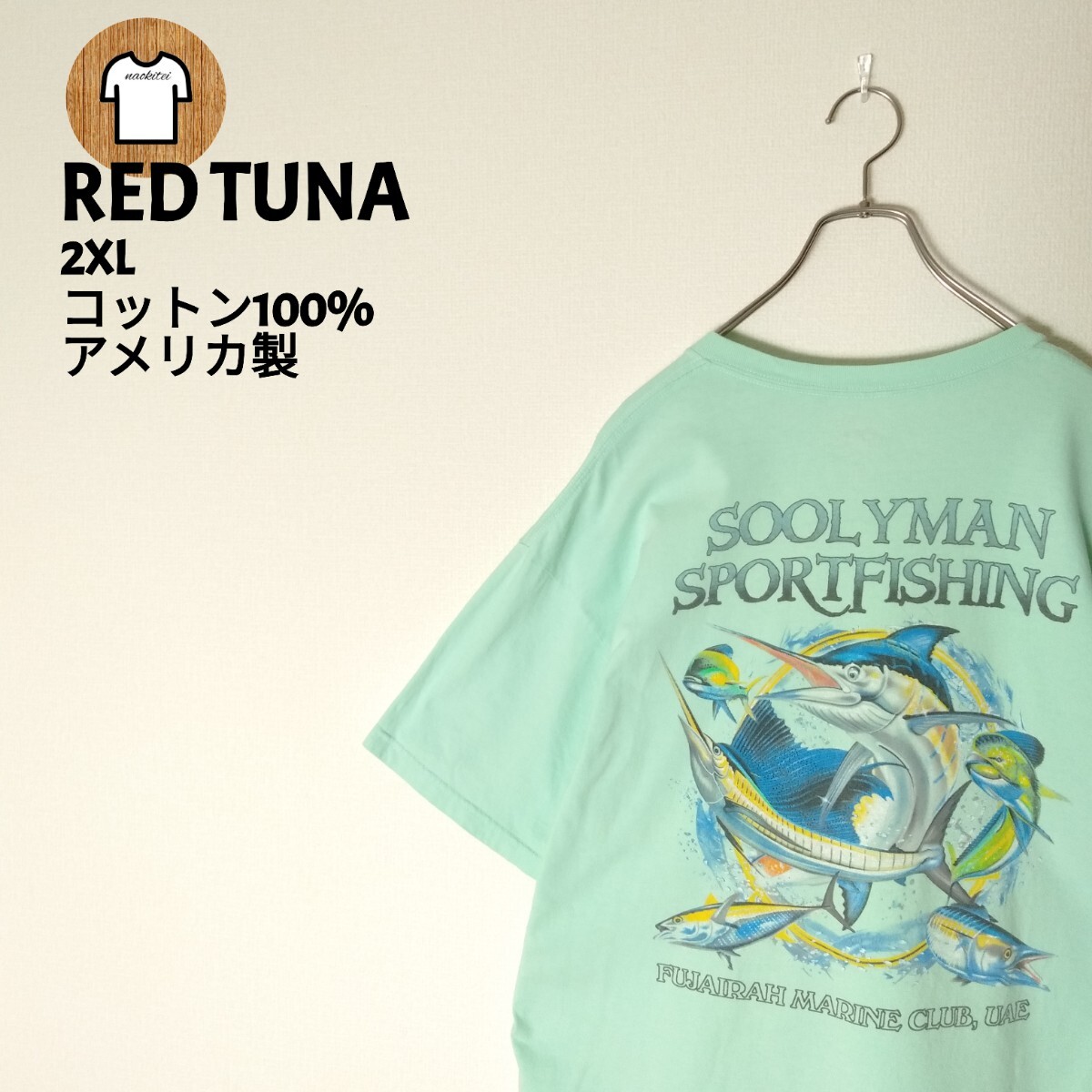 > RED TUNA 半袖 Tシャツ 2XL ミントグリーン B75 無地 バックプリント コットン 綿 アメリカ製 USA SOOLYMAN SPORT FISHING カジキ 魚