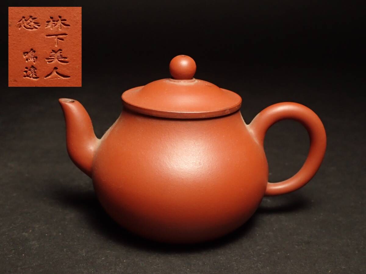 - S244 急須 林下美人 悠 鳴遠 煎茶 朱泥 煎茶 11.5cmX7.5cm 7.5cm