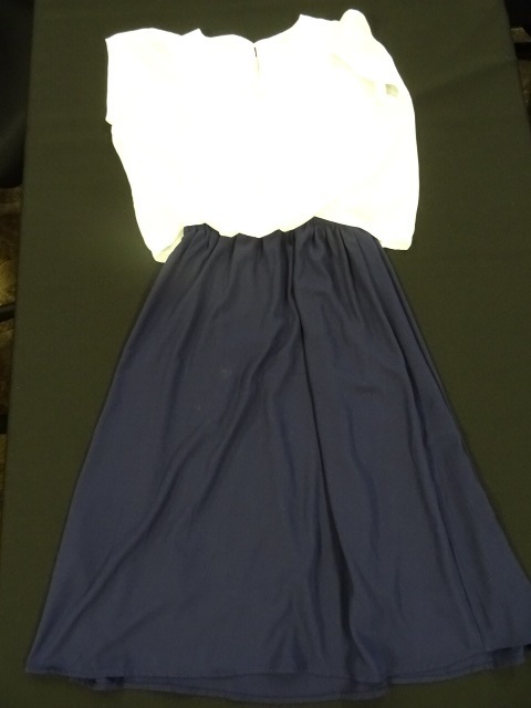 - LuLuLuniy ワンピース 白ブラウス 紺スカート フレアスカート 古着 USED レディース おでかけ 通勤 行事参加