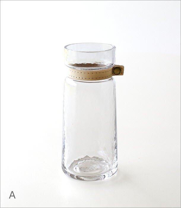 - 花瓶 フラワーベース おしゃれ ガラス 花器 ガラスベース 革巻きゆらぎガラスのベース M 【Aカラー】 送料無料(一部地域除く) yrd8587a