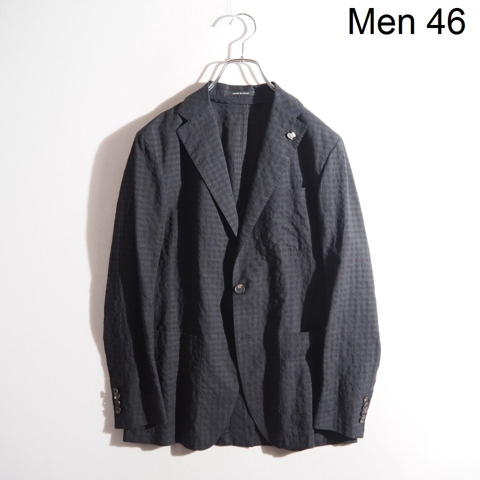 - P1227P ▼TAGLIATORE タリアトーレ▼ G-SAHARA リネンウール シアサッカー アンコン 2B テーラードジャケット ブラック 46 春夏 rb mks