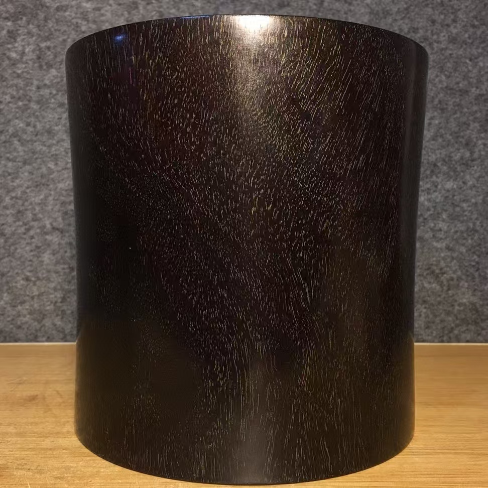 - 古木彫り 秘藏 清代 古代黒紫檀満金星紋筆筒 書道具 文房具 時代物 中国古美術 細密彫 置物 賞物 唐物 木彫り 文玩 6.28