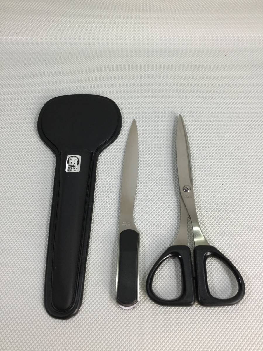 - S1529○SILKY DESK SET ステンレスハサミ ペーパーナイフ 2点セット ケース付き 中古 【動作品】
