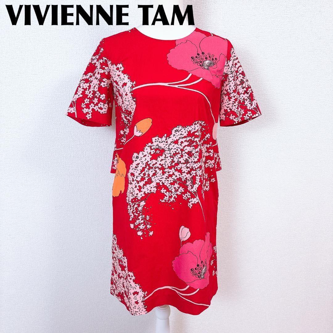 - 【美品】ヴィヴィアンタム 半袖ワンピース 花柄 1 花柄 レッド