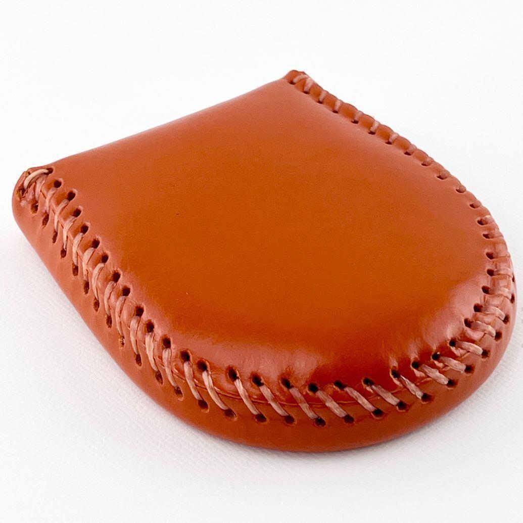 - 手縫い 本革 コインケース 大容量 コンパクト 小銭入れ 高級レザー オレンジ