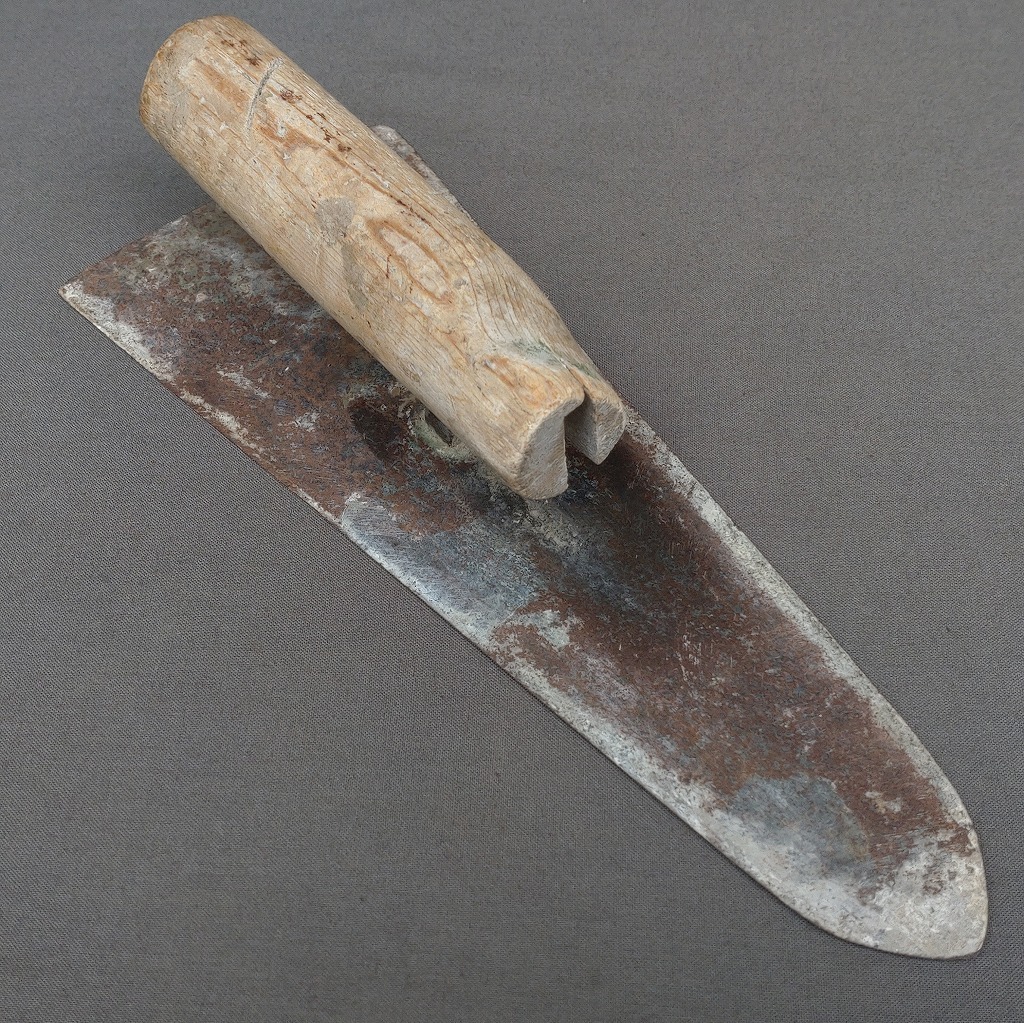 - 左官鏝 古鏝 ハガネ 鏝の長さ約264㎜ 最大幅約102㎜ こて コテ 左官道具 【4283】