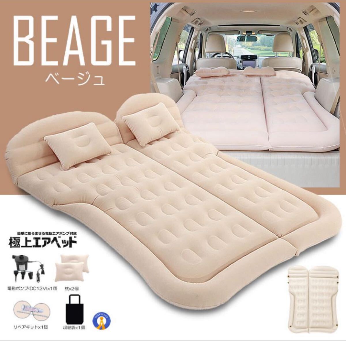 > エアーベッド 車中泊 マット SUV車 車用ベッド 後部座席用 カー用品 アウトドア キャンプ レジャー 旅行 防災 カラー ベージュ
