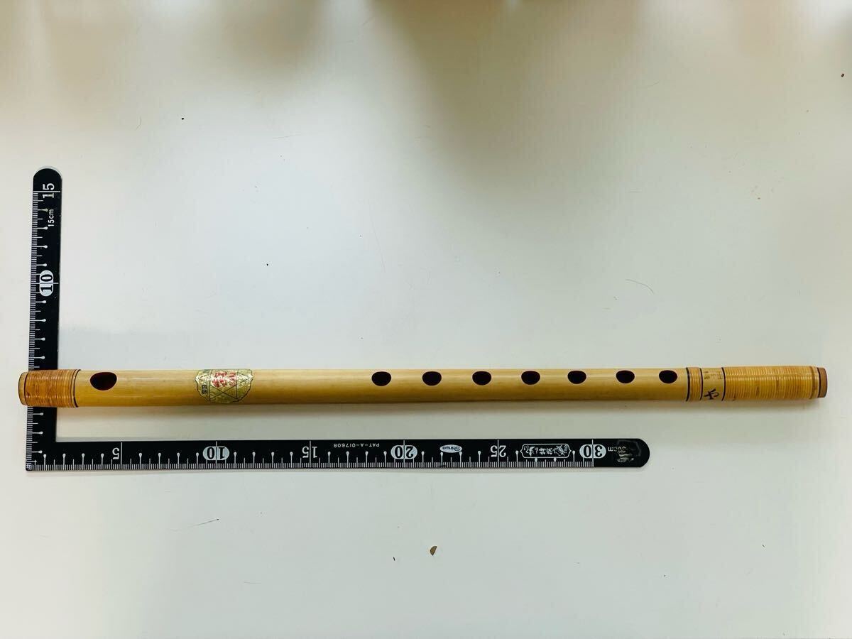 - 獅子田流 篠笛 「紫山」銘 大岡紫山 七穴 六本調子 黒漆塗/総巻 全長約42cm 和楽器 現状品 長期保管品