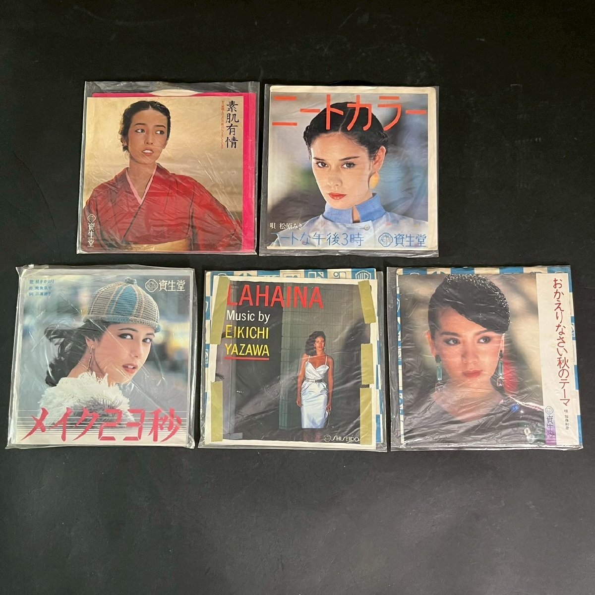 - SW0612-63-7-3 レコード 昭和 資生堂 SHISEIDO CM ソング ニートカラー 素肌有情 メイク23秒 LAHAINA 矢沢永吉 シングル まとめ 60サイズ
