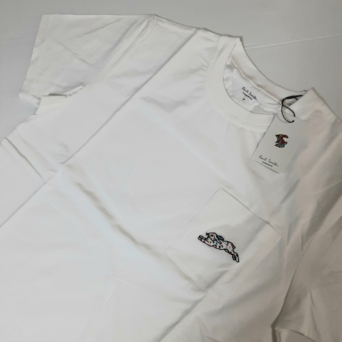 - 新品未使用 ポールスミス Paul Smith 胸ポケットにウサギ刺繍 半袖Tシャツ M 白 HOMEWEAR 綿100% 30-7309 裾ロゴ ホワイト うさぎ