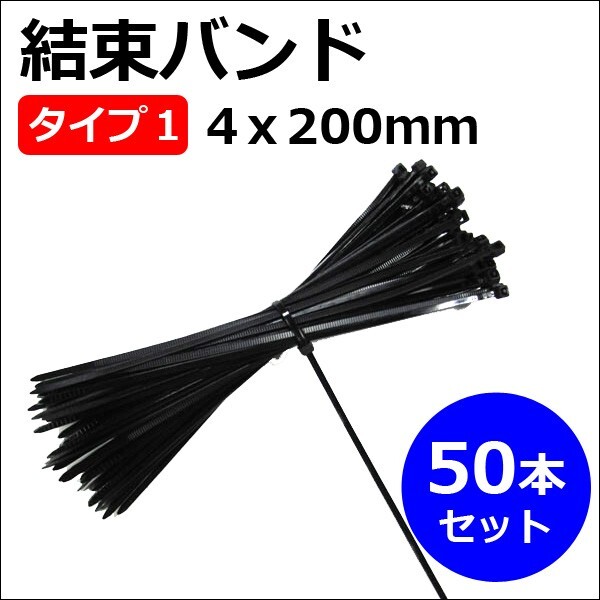 - 【互換品】結束バンド / タイラップ (タイプ1 (4x200mm))(黒) (50本セット)