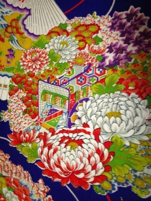 > F-15★紫地*御所車*雉*扇*手毬*糸巻*薔薇*牡丹*菊*交織*古布はぎれ★暖簾/タペストリー/一閑張り/夏柄