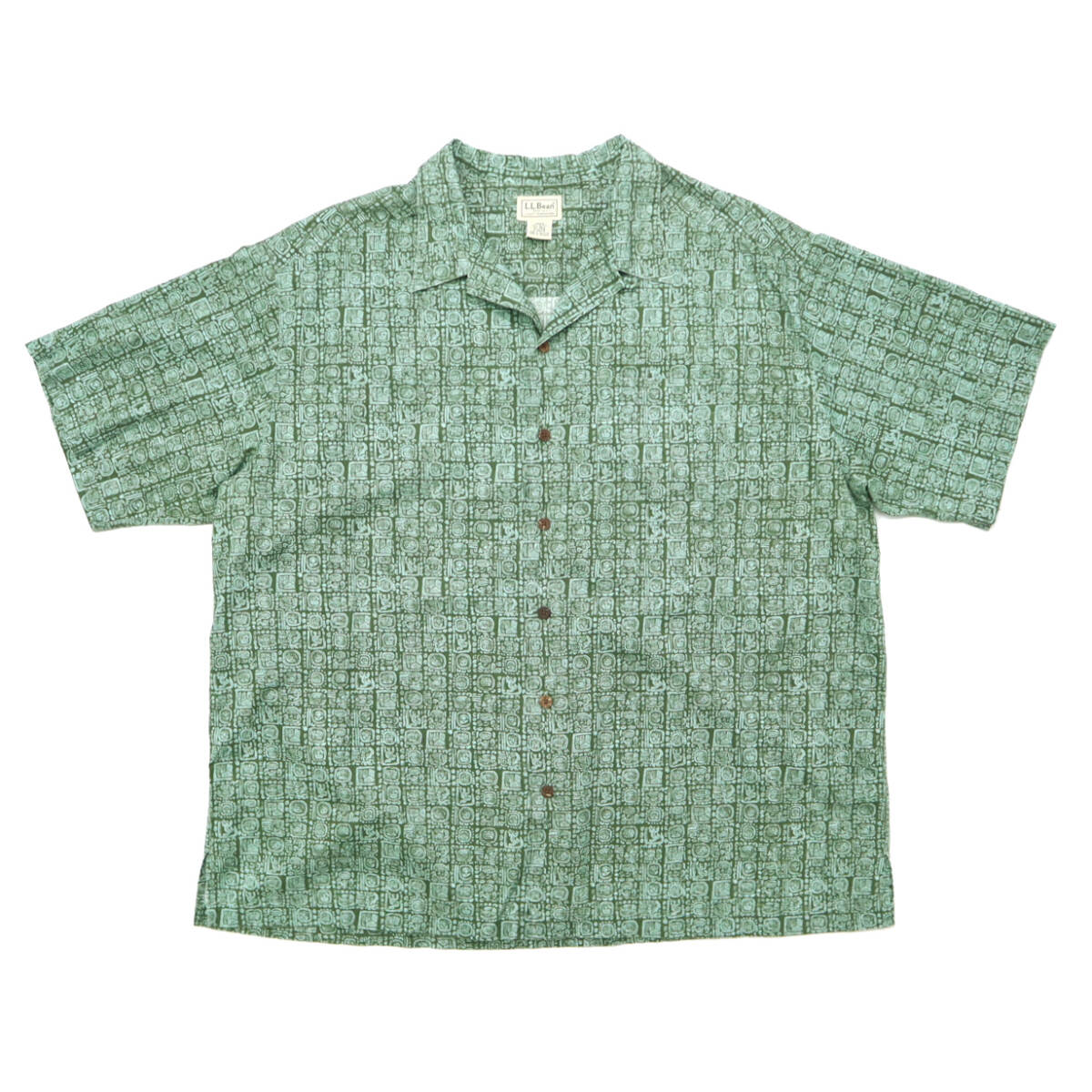 > 00s ビンテージ LL BEAN エルエルビーン 総柄 半袖 シャツ 柄シャツ オープンカラー 開襟 開衿 ボックス 緑 古着 アウトドア キャンプ XL