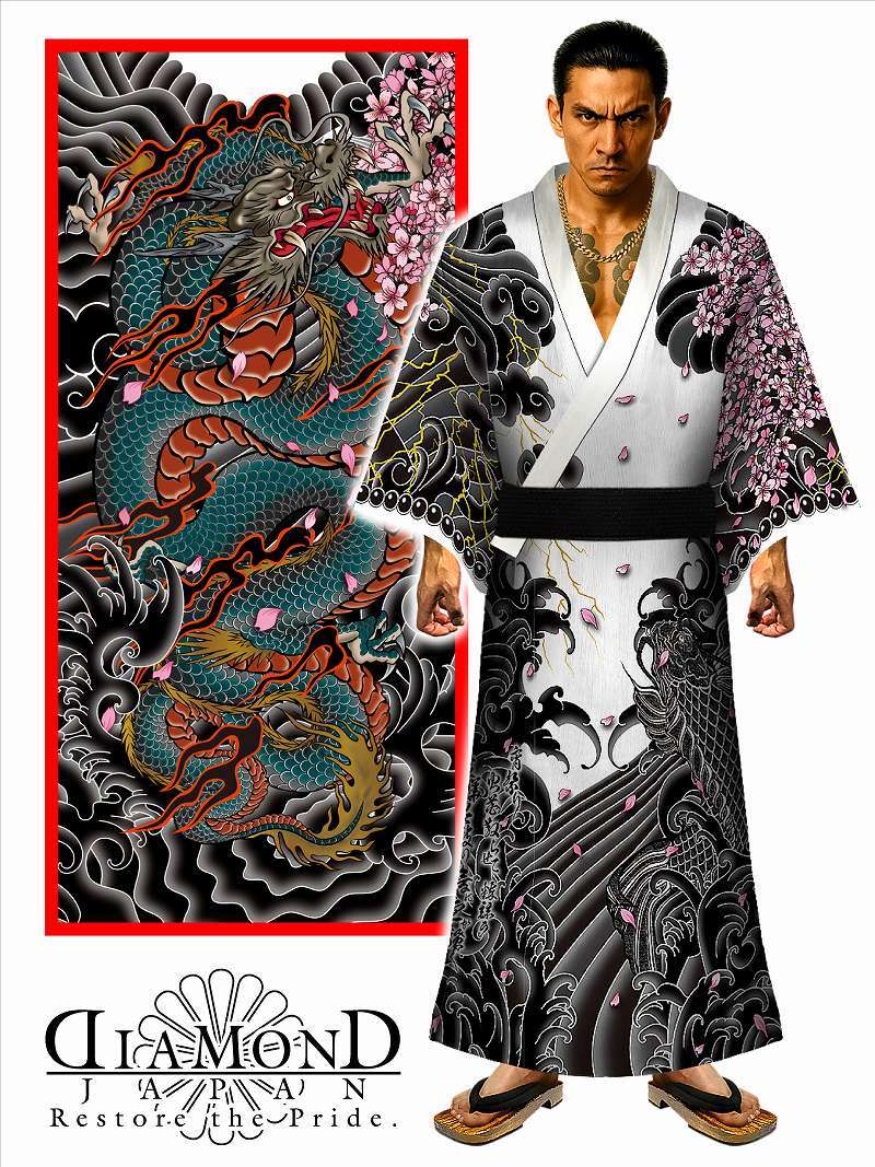 - 浴衣 和柄 刺青龍 DJ-226 和彫り ヤクザ ヤンキー オラオラ 和服 着物 派手 夏物 祭 花火 メンズ ファッション