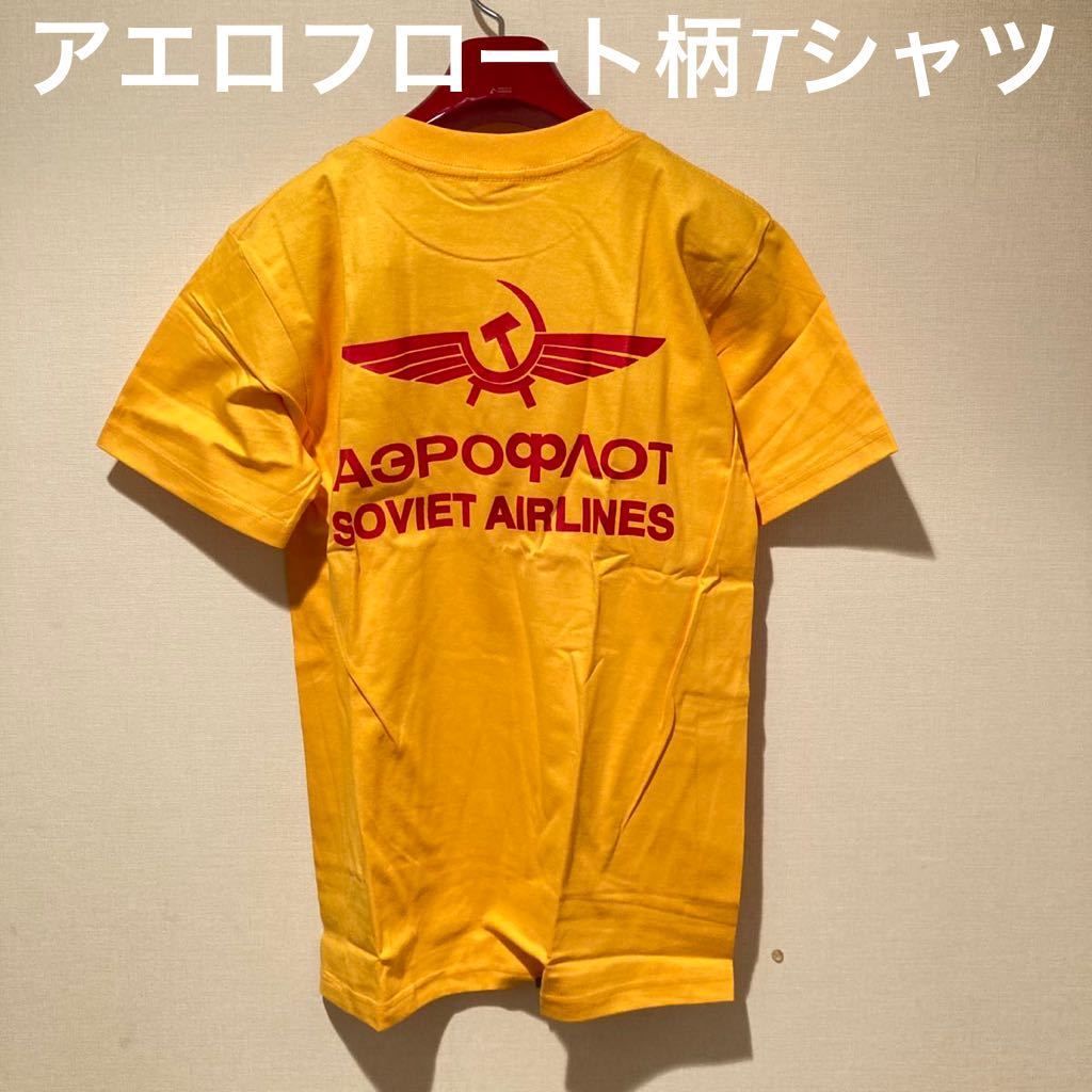 - ★意外とカッコいい★ロシアアエロフロートTシャツ黄M★送料無料★