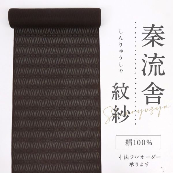 - 【反物】 薄物上代衣 『秦流舎』 紋紗織 菱繋ぎ地紋 濃茶 正絹着物 お仕立て可 反25-50