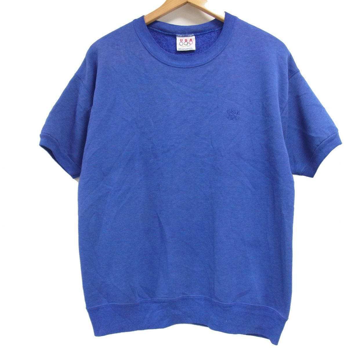 > 90s☆J.C.PENNY ジェイシーペニー オリンピック USAチーム ワンポイントロゴ 刺繍 半袖 スウェット シャツ メンズ USA製