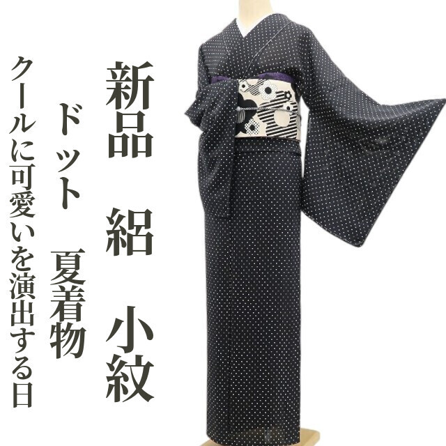 - tomihisa 新品 絽 ドット 夏着物 正絹 仕付け糸付“クールに可愛いを演出する日”小紋 6158