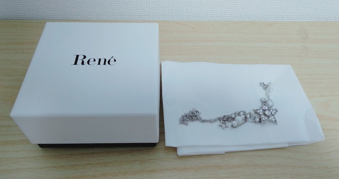 > 未使用に近い Rene ルネ ネックレス パール ビジュースター 星形 シルバー×ホワイト ◎A597