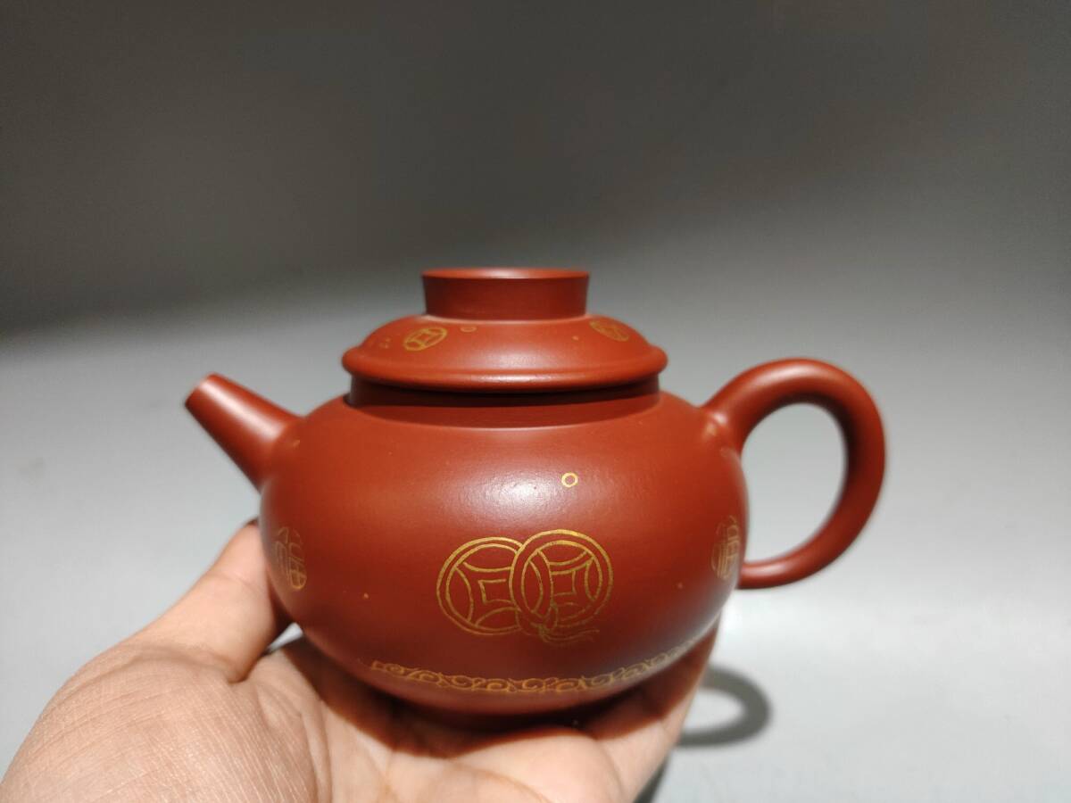 - 蔵友旧蔵出 紫砂壺 描金聞香壺 謝曉東款 原礦大紅袍 茶道品 煎茶道具 文房賞物 希少珍品 中国古玩 中国古美術品