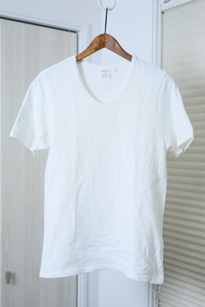 DENIME ドゥニーム Uネック無地オフホワイト半袖Tシャツ