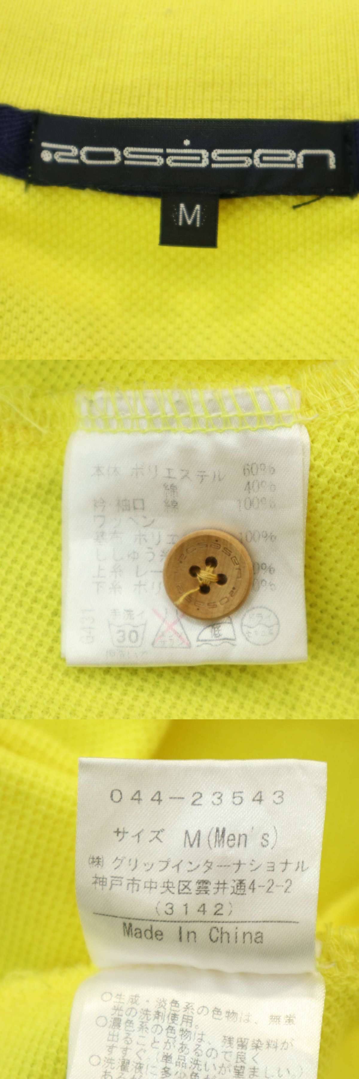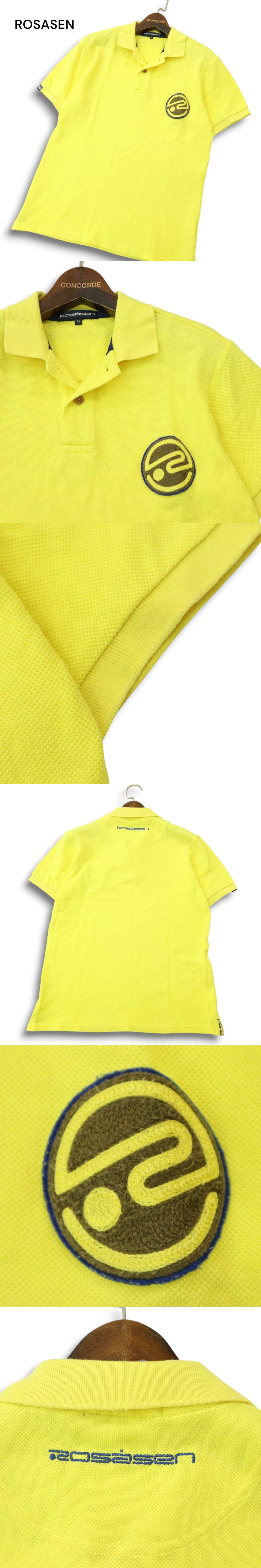 - ROSASEN ロサーセン ゴルフ 春夏 ロゴ刺繍 ワッペン★ 半袖 鹿の子 ポロシャツ Sz.M メンズ 黄色