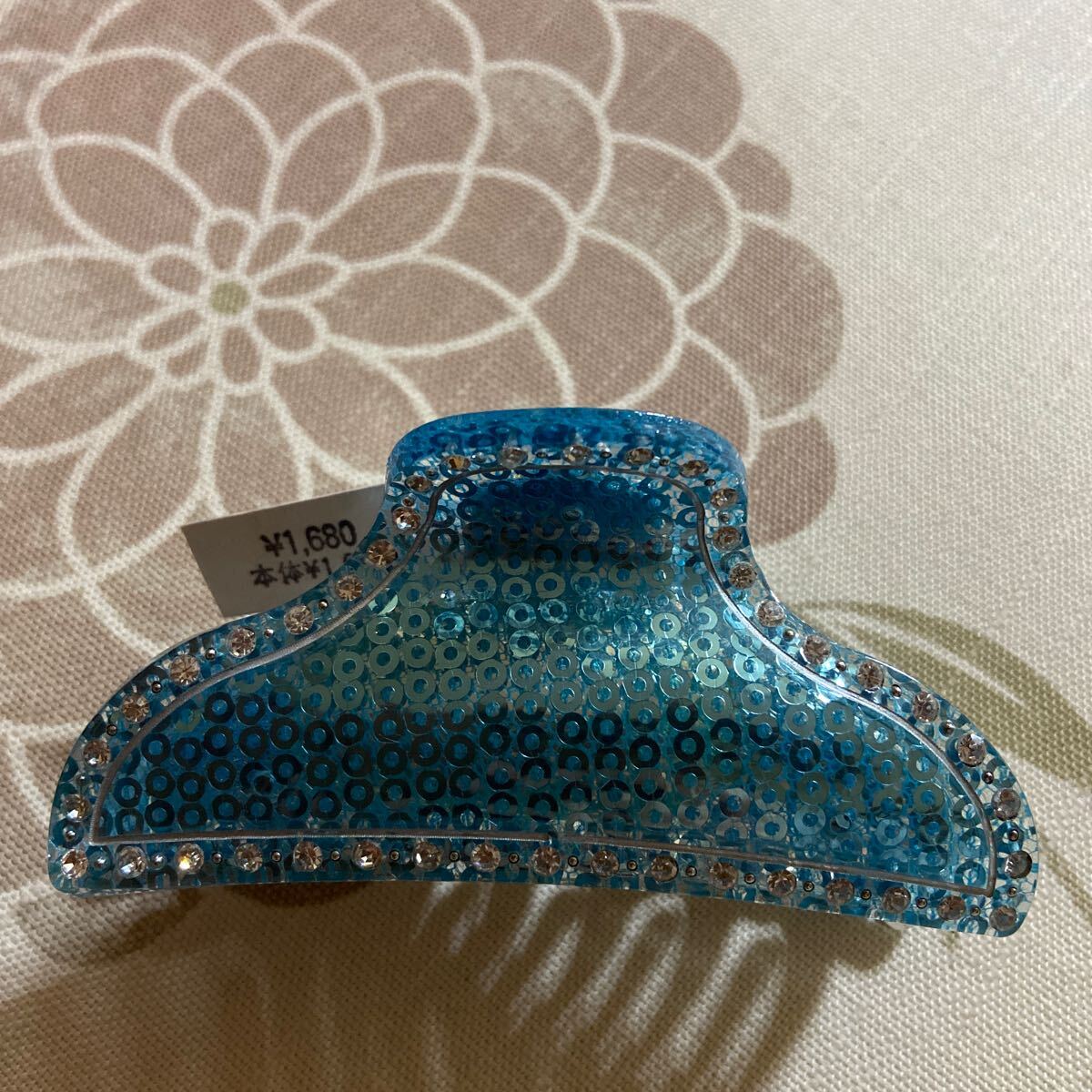 - 髪飾り クリップ スパンコール ラインストーン。ブルー