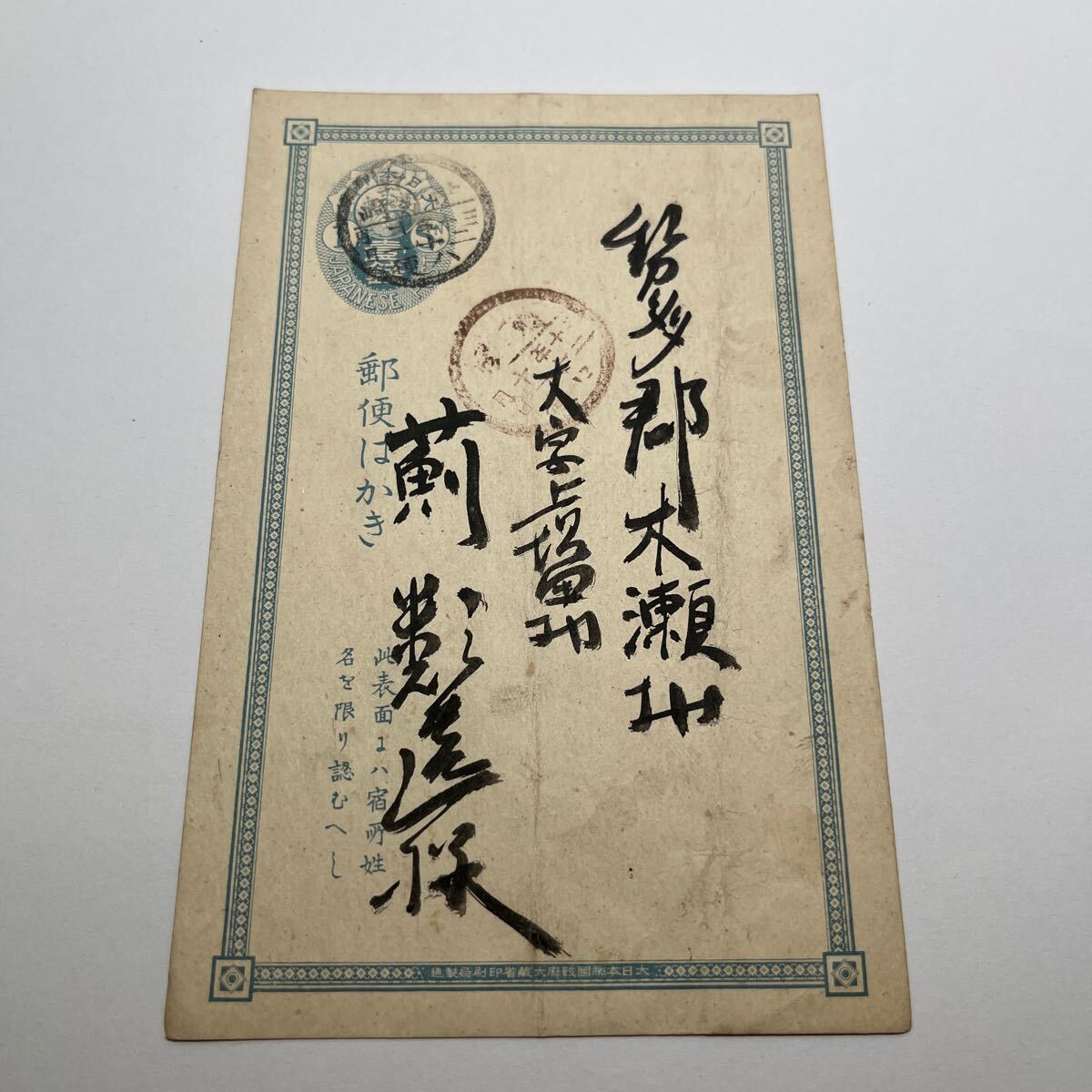 - 古文書 明治30年 エンタイヤ 明治時代 青 一銭 小判はがき 送料110円『OA3』