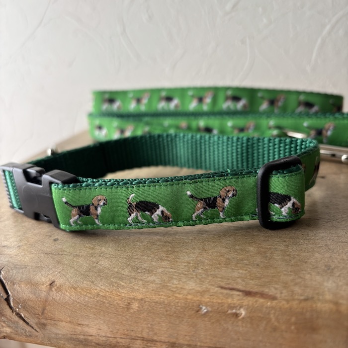 - ビーグル 首輪&リード グリーン アメリカ製 Beagle Collar leash