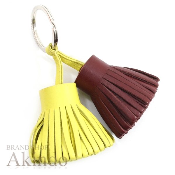 - 【新品】エルメス キーホルダー バッグ チャーム カルメン ウノドス ライム×ルージュグレナ (黄/赤茶) タッセル HERMES