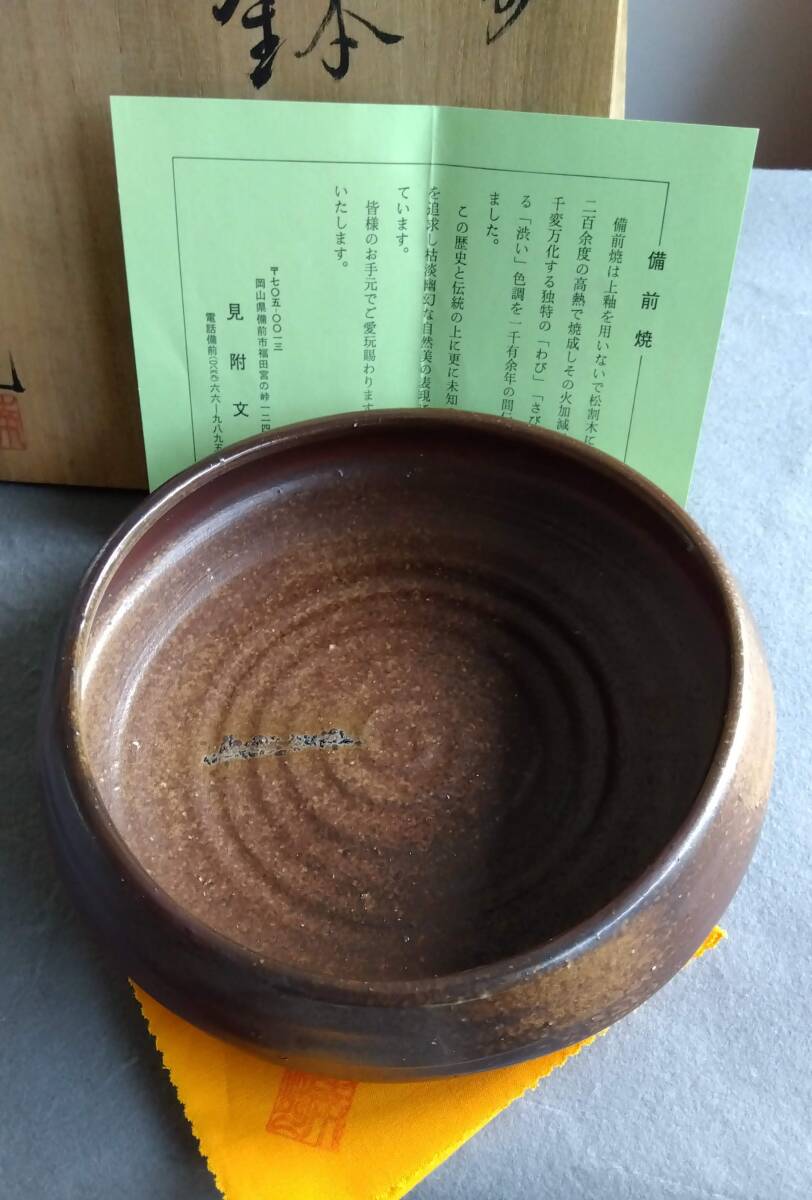 - 備前焼 登窯 備前市無形文化財 見附 文雄 共箱付き多目的浅鉢【花器/お菓子鉢】