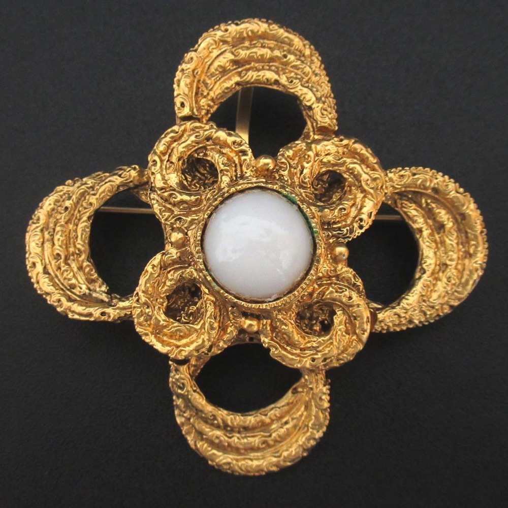- 良品 Yves Saint Laurent イヴサンローラン ヴィンテージ フェイクパール 大ぶり ブローチ ゴールドカラー