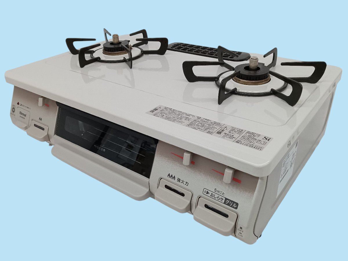 > ガステーブル RTE597BER リンナイ LPガス用 60cm幅 動作OK 2023年製 中古 右強火力 水無し片面焼き 2口 ガスコンロ プロパンガス Rinnai