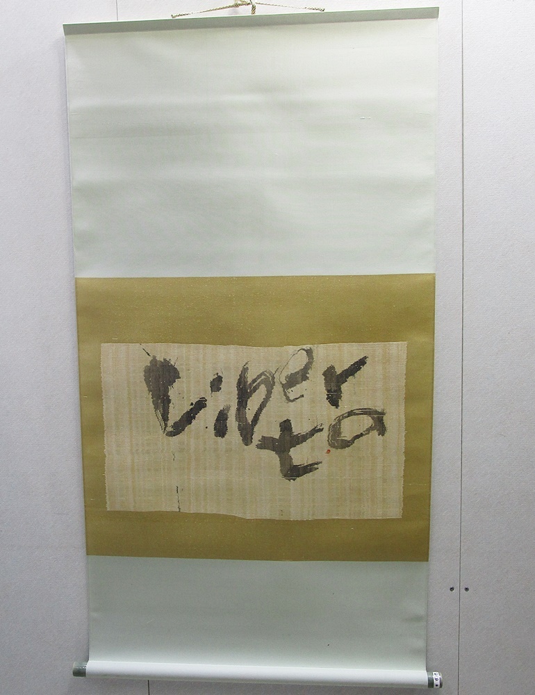 - 《ジャムルK》KKg0422-73◆珍品 ラテン語 Liberta 自由 エジプト産 パピルス使用 掛軸 床飾