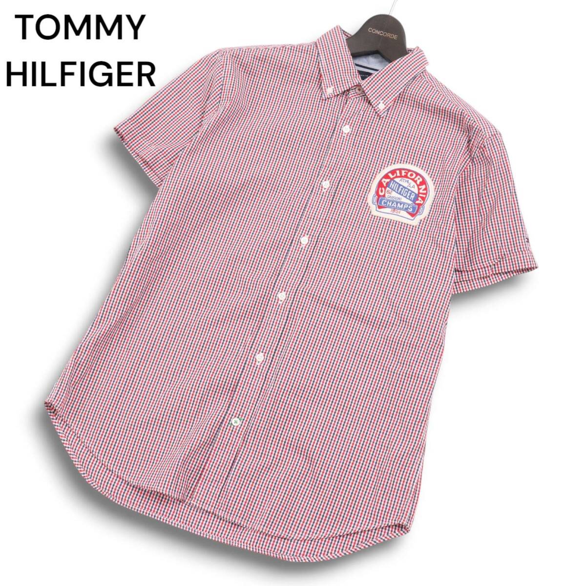 - TOMMY HILFIGER トミーヒルフィガー ロゴ刺繍★ California 半袖 チェック ボタンダウン シャツ Sz.M メンズ