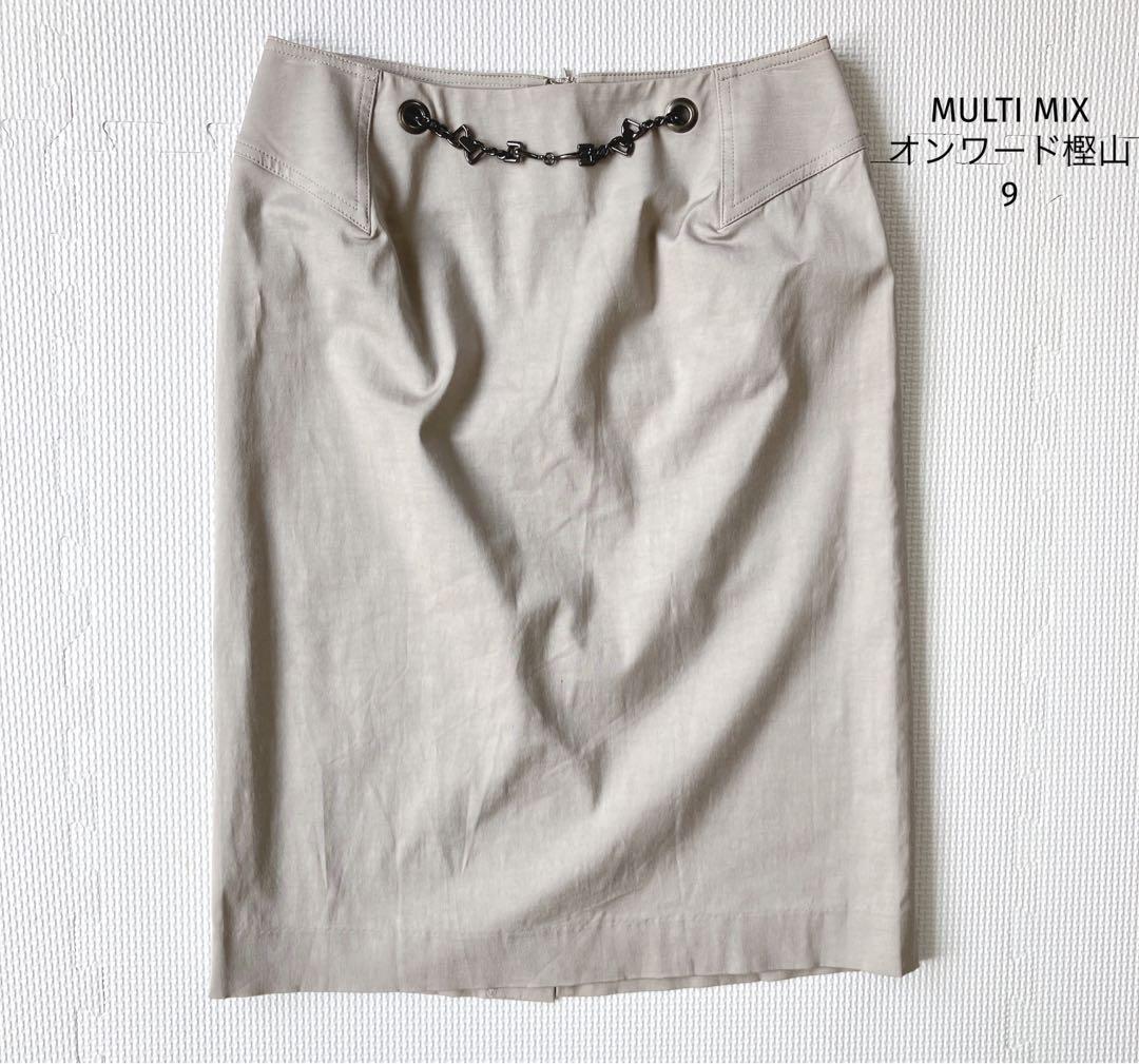 - MULTI MIX オンワード樫山 タイトスカート【9】グレージュ チェーン