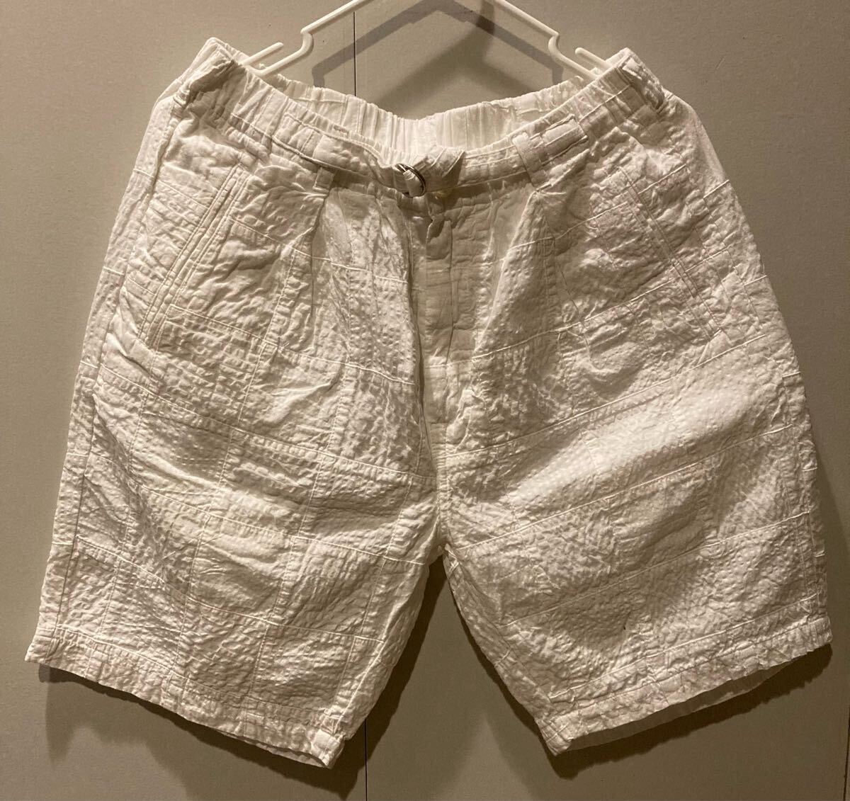 > post overalls o'alls ポストオーバーオールズ ショートパンツ ショーツ シアサッカー パッチワーク 織柄 L 短パン ハーフパンツ