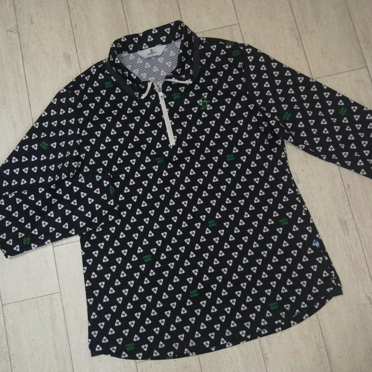 > 美品/Munsingwear/マンシングウェア/ポロシャツ/ウェア/ゴルフ/GOLF/総柄/ハーフジップ/ネイビー