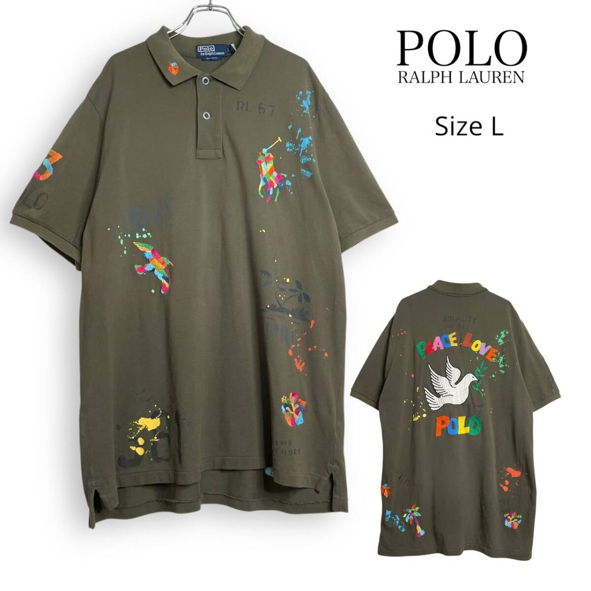 > 希少デザイン 現行タグ POLO RALPH LAUREN PEACE LOVE ポロ ラルフローレン ピースラブ ビッグポニー 半袖 ポロシャツ L