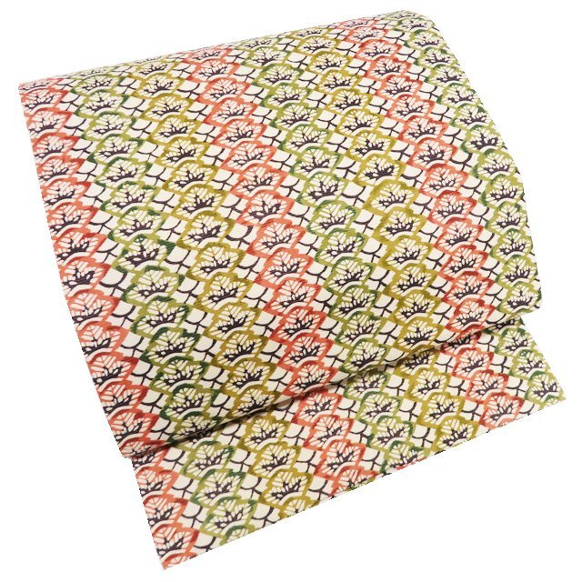- 夏物 夏帯 名古屋帯 なごや帯 未使用 正絹 絽 カジュアル 仕立て上がり 全通 植物文様 マルチカラー 多色 きもの北條 A1229-11