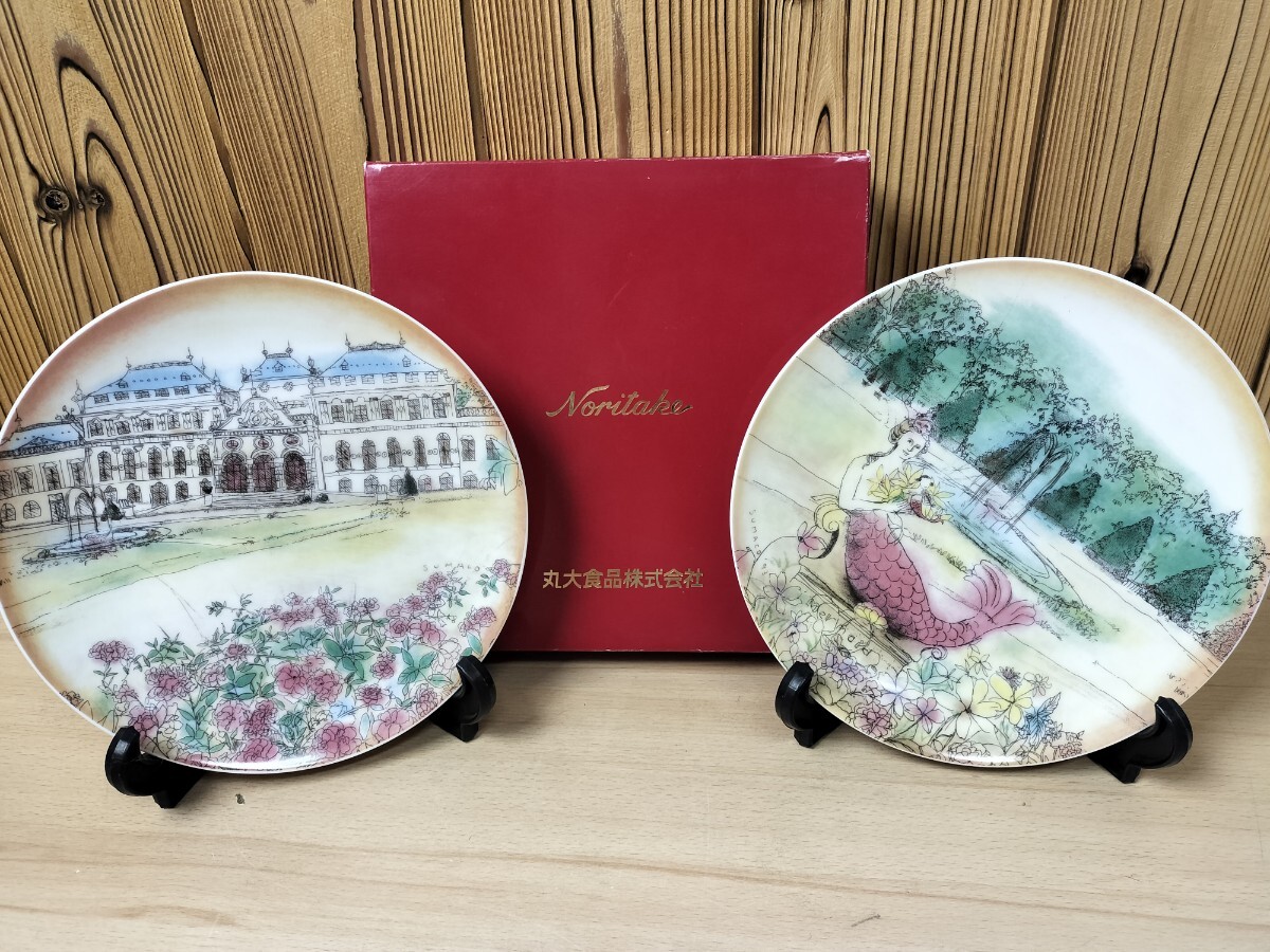 - ★Noritake×丸大食品 コラボ 絵皿 飾り皿 プレート 皿立て付き★