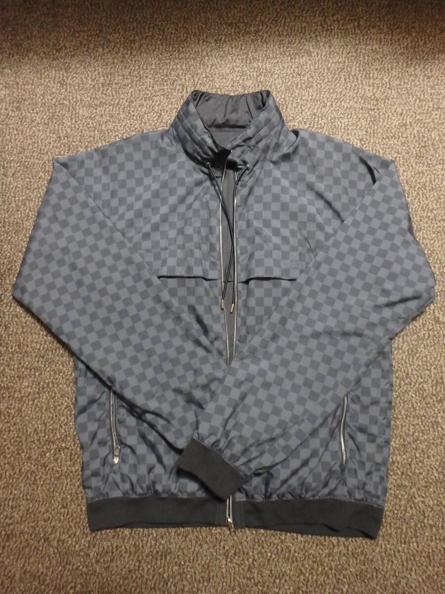 > 【USED・超美品・超レア】ルイヴィトン ダミエ リバーシブル ナイロンジャケット 52 フード付 ブラック×ブラック